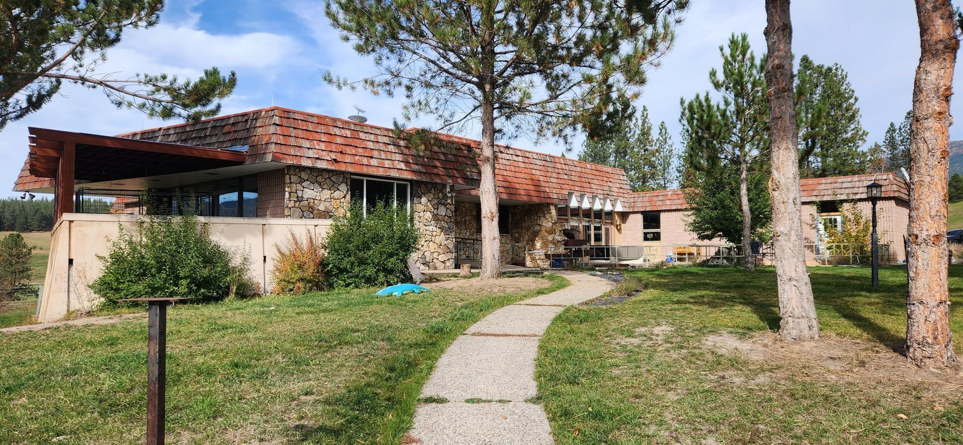 A house with a red tile roof is surrounded by trees and a path leading to it.